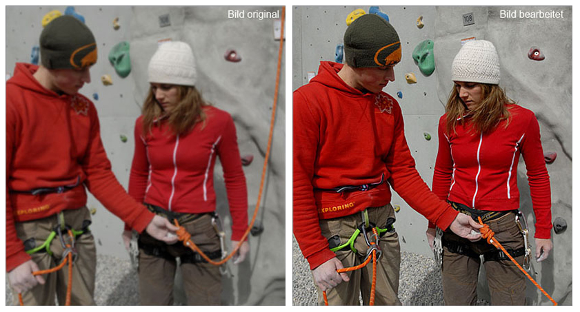 Es wurde mit "Anpasung / Helligkeit und Kontraste" so wie mit einzelnen "Fabtonsättigungen" + "Selektiver Farbkorrektur" bearbeitet + Schärfe mit "unscharf Maskieren"(!) verstärkt. |